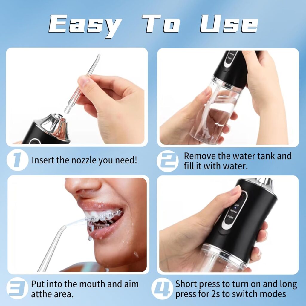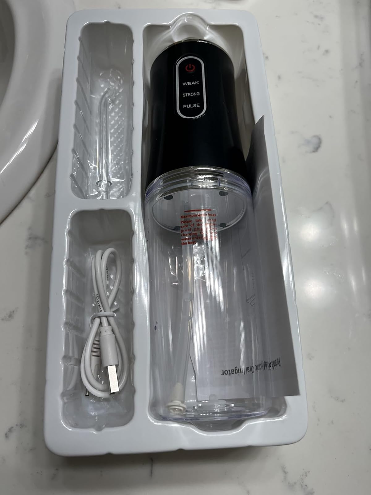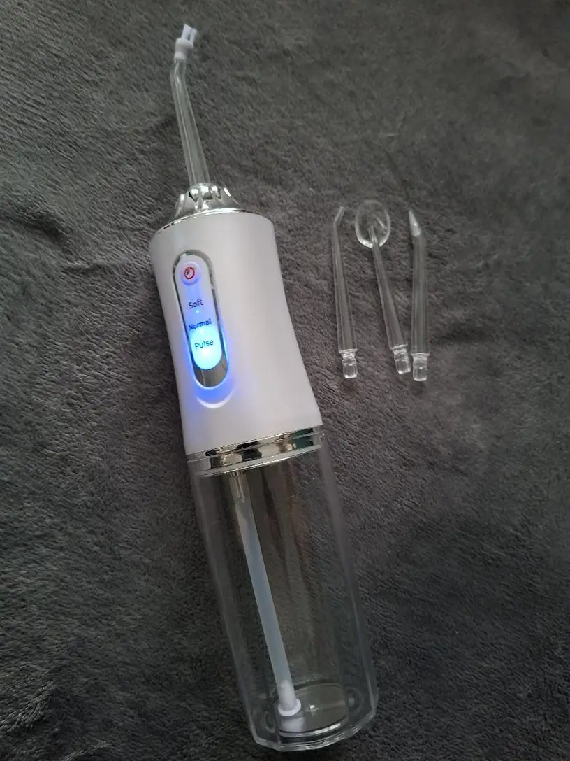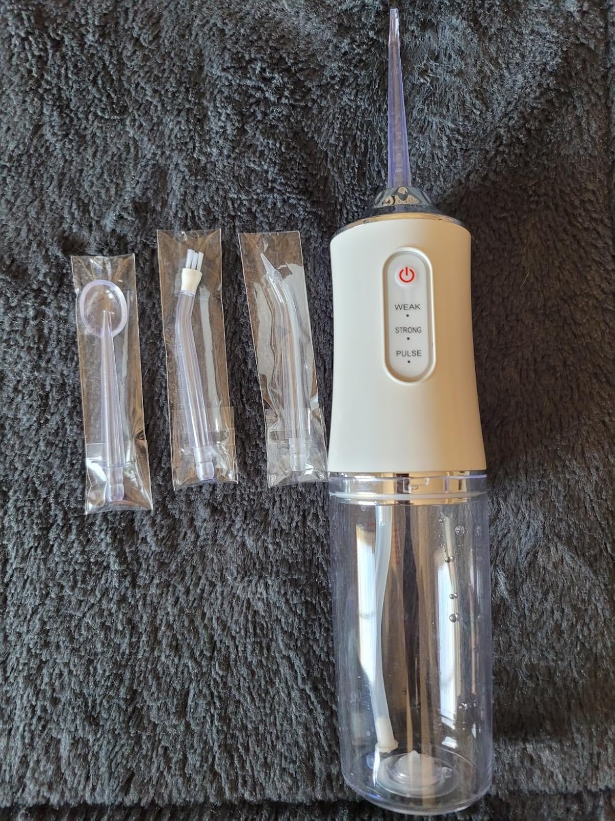 I’ve been using it for about 10 days now, and I really like it. First of all, my teeth are a bit sensitive to hot and cold water, so I’ve been using lukewarm water. It has three different speeds and a few different nozzles, depending on what you’ve eaten. My mouth and teeth feel much cleaner, and the quality is excellent. It’s also comfortable to hold.