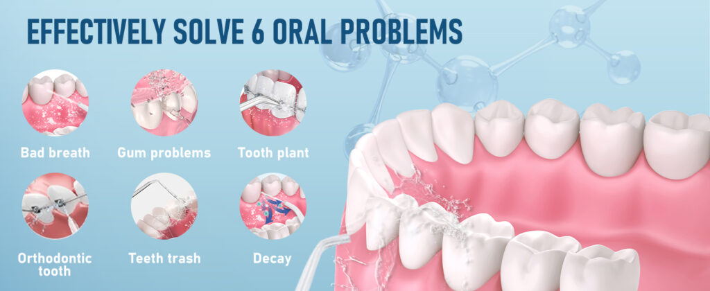 SmileX uses powerful water pressure to flush out hidden dirt between your teeth and gums, those spots your toothbrush misses everytime!